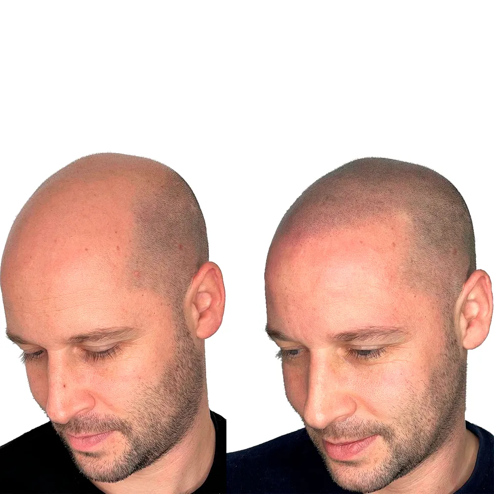 Sí. La Micropigmentación Capilar recrea visualmente la densidad y el nacimiento del cabello con pigmentos especiales, logrando un acabado totalmente natural y adaptado a tu tono y estilo.